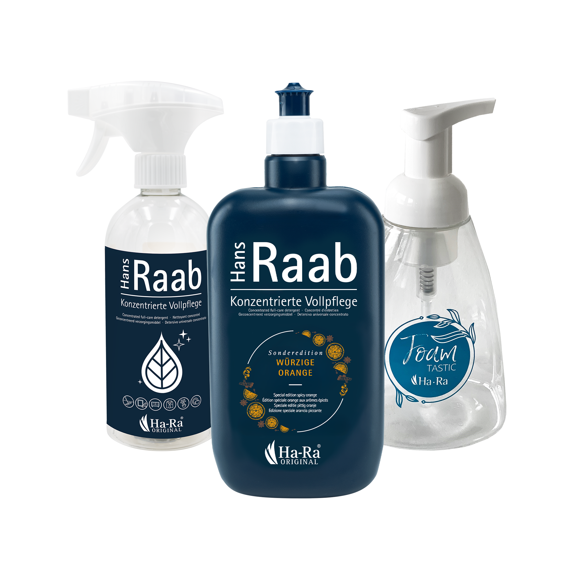 Unsere Hans Raab Konzentrierte Vollpflege so flexibel wie nie: Unverdünnt ins Putzwasser, Ready-to-use in der Sprühflasche oder als ergiebiger Schaum zum Händewaschen. Mit diesem Set wirst Du zu einem echten Reinigungskünstler und reinigst Dein gesamtes Zuhause mit nur einem Produkt im Handumdrehen.